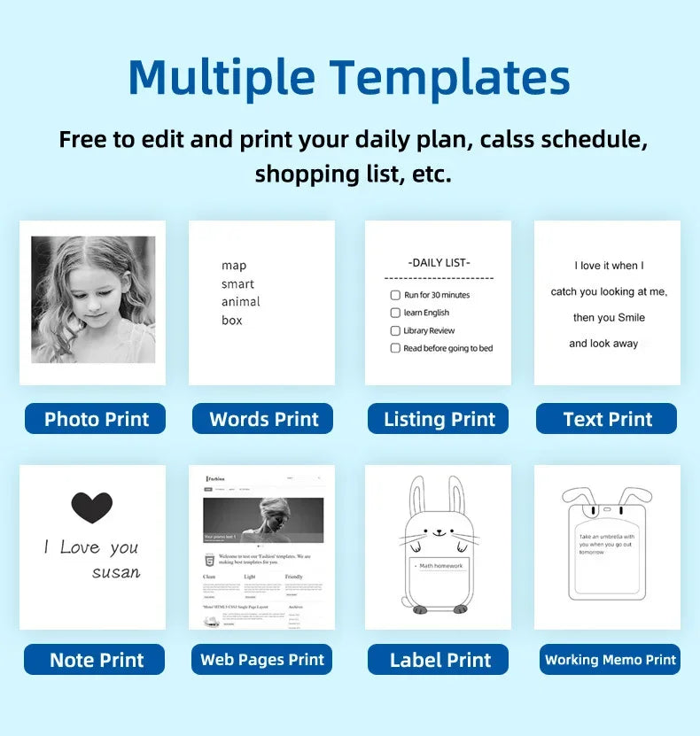 Capture memories, create cute stickers, or organize your notes with the Kawaii Mini Pocket Printer. This adorable pocket-sized printer connects easily to your smartphone via Bluetooth and prints in seconds. Perfect for journals, scrapbooking, to-do lists, and gifting special memories!